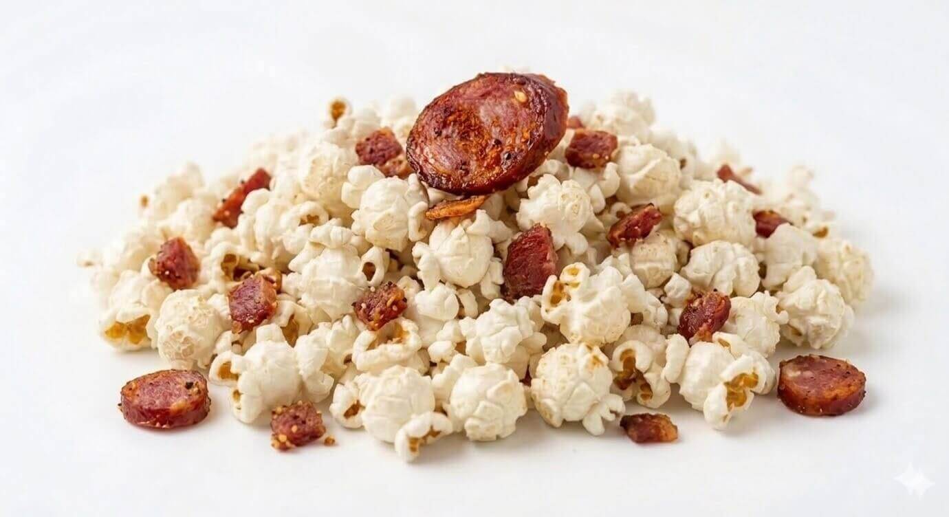 O diferencial da casa! Ingredientes de verdade misturados na pipoca — não é tempero, é o ingrediente real.